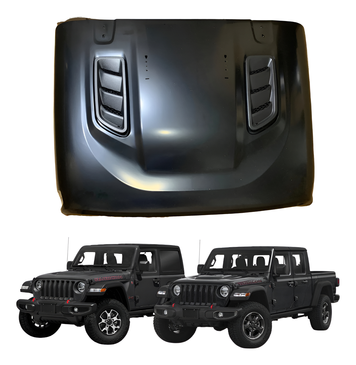 Dale a tu Jeep un look más imponente y funcional con este cofre de alto perfil para Rubicon, Mojave y Sahara, inspirado en las versiones más icónicas del JL. Ideal para mejorar la estética, el flujo de aire y la actitud off-road de tu vehículo.