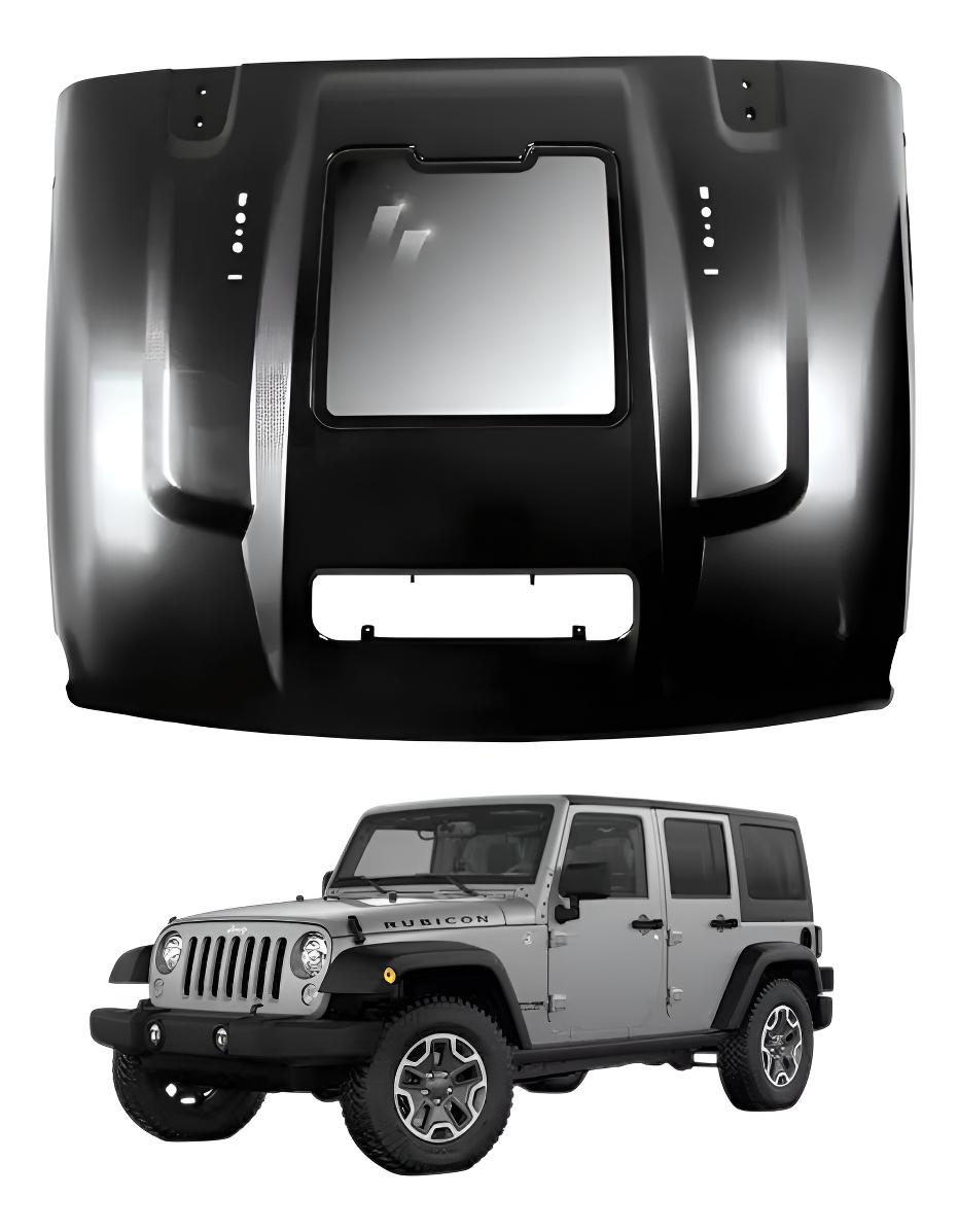 El cofre con cristal T-REX PERFORMANCE es el accesorio ideal para darle a tu Jeep JK un estilo más agresivo y exclusivo. Su diseño incorpora cristal central que no solo mejora la estética, sino que también le otorga un toque premium y único. Además, incluye moldura lateral y frontal para complementar la apariencia y asegurar un ensamble perfecto.