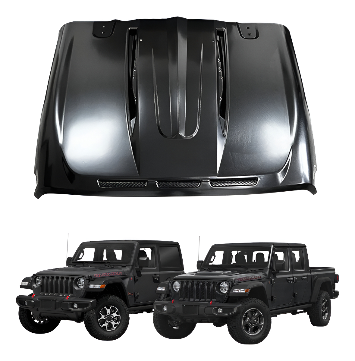 Dale a tu Jeep un look más imponente y funcional con este cofre de alto perfil para Rubicon, Mojave y Sahara, inspirado en las versiones más icónicas del JL. Ideal para mejorar la estética, el flujo de aire y la actitud off-road de tu vehículo.