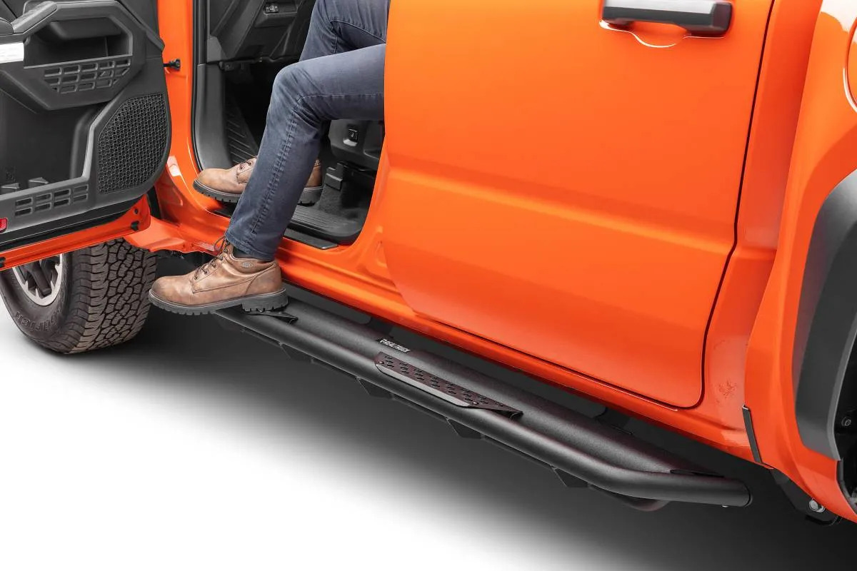 El diseño de doble propósito funciona como escalones y deslizadores de rocas.Construcción duradera de acero dulceAcabado con pintura en polvo negra texturizadaLa barra de protección de longitud completa cuenta con un diseño de soporte de tres tubos para mayor resistenciaSuperficies de apoyo de 2'' de ancho, desmontables y pintablesLas almohadillas de escalón perforadas con patrón hexagonal ofrecen agarre adicionalSe monta en los paneles inferiores del vehículo (montaje en marco disponible en aplicaciones selectas)Incluye kit de montaje Dominator Xtreme y guía de instalaciónAplicación sencilla con pernos, sin necesidad de taladrarEstructura de por vida limitada | Garantía de acabado de 5 años