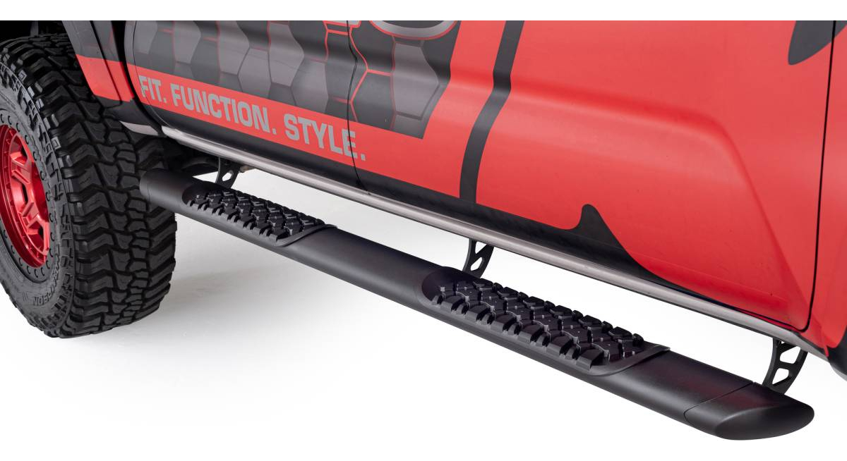 Nuevo estribo de aluminio dual extruido con un diseño más fresco y diferente, con huellas de pisada agresivas para tracción extrema creando una armonía perfecta entre Offroad y los estribos clásicos.