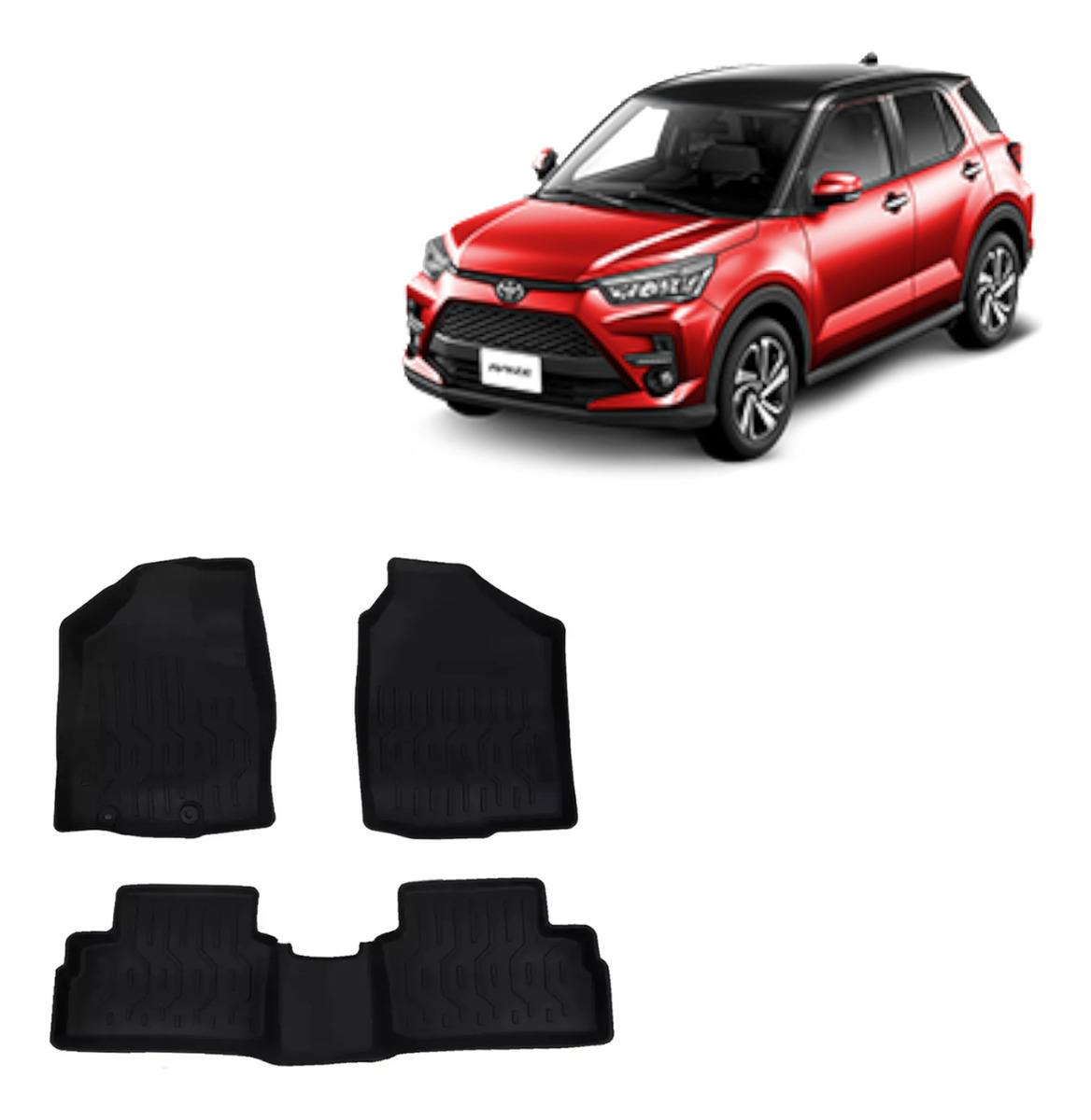 Tapetes de uso rudo diseñados específicamente para Raize (Modelos 2021-2024). Fabricados con materiales duraderos y de alta calidad, estos tapetes ofrecen una excelente cobertura y protección para los pisos del vehículo, manteniendo su interior limpio y nuevo.