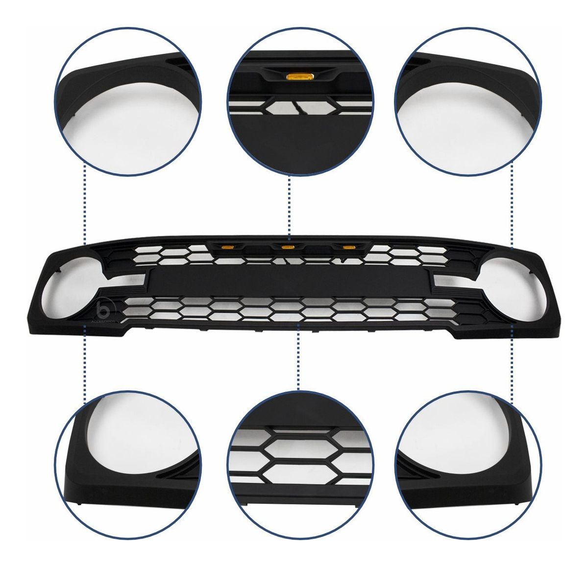 Iluminación LED Atractiva: Equipada con luces LED en color ámbar, esta parrilla no solo mejora la visibilidad, sino que también agrega un toque de estilo y sofisticación, destacando tu Vehículo en cualquier situación.