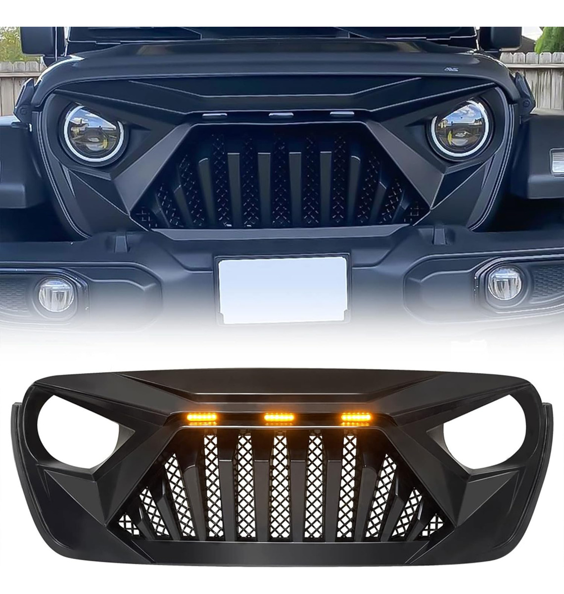Parrilla Angry con LED Ámbar para Jeep Wrangler JL 2018–2025