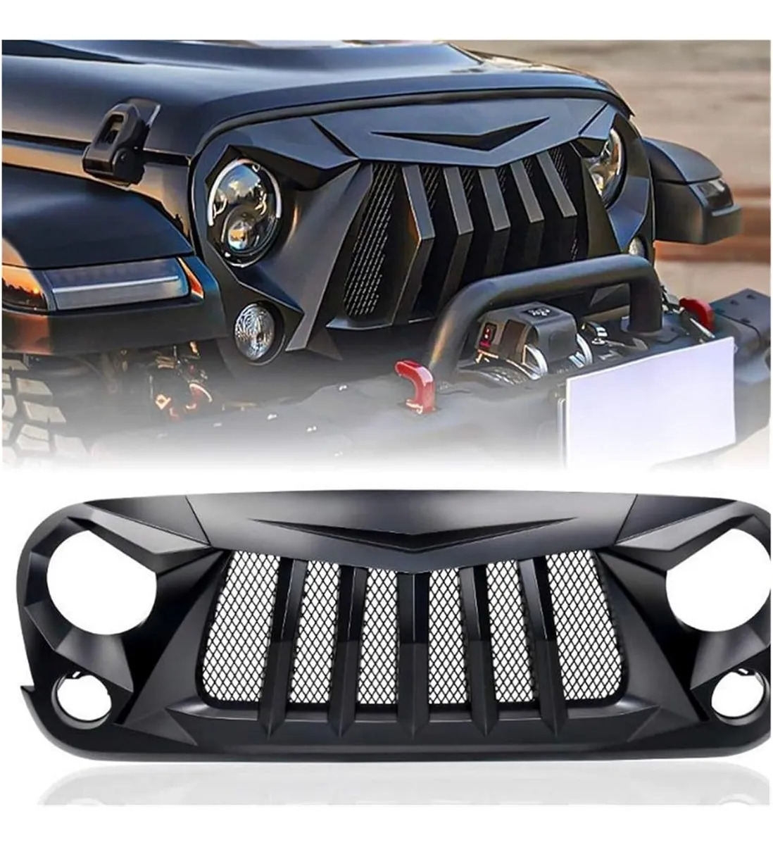 Dale a tu Jeep Wrangler un estilo más agresivo y off road con esta parrilla tipo Angry, diseñada para cambiar por completo el frente del vehículo. Su diseño enojado con líneas marcadas le da una apariencia robusta y deportiva, ideal para quienes buscan un look más rudo y personalizado.