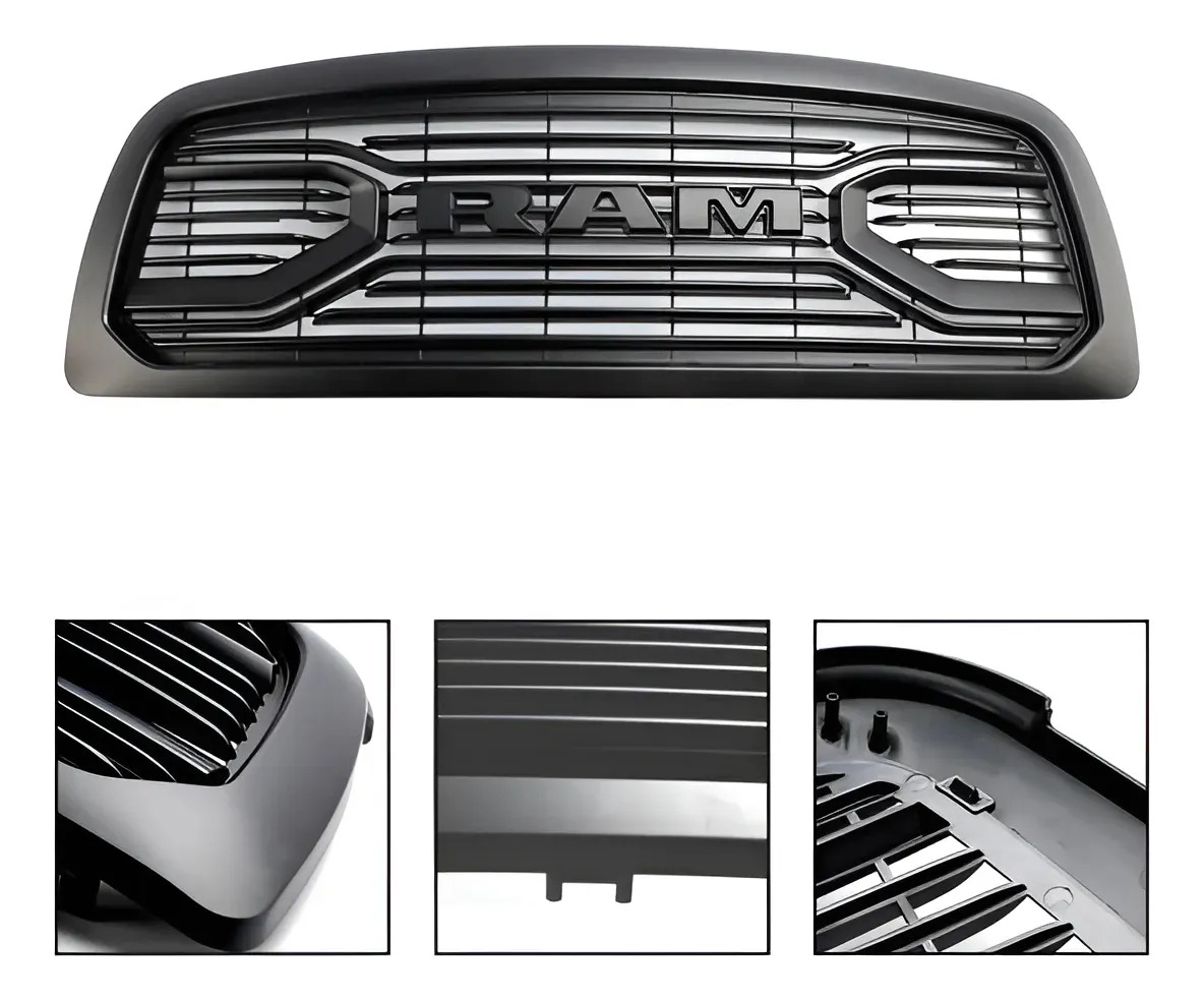 Renueva el frente de tu RAM 1500 con esta parrilla negra de diseño agresivo y moderno, ideal para quienes buscan una imagen más imponente y alineada al estilo off road. Su estética robusta transforma por completo la apariencia frontal de la camioneta, dándole un carácter más fuerte y actualizado.