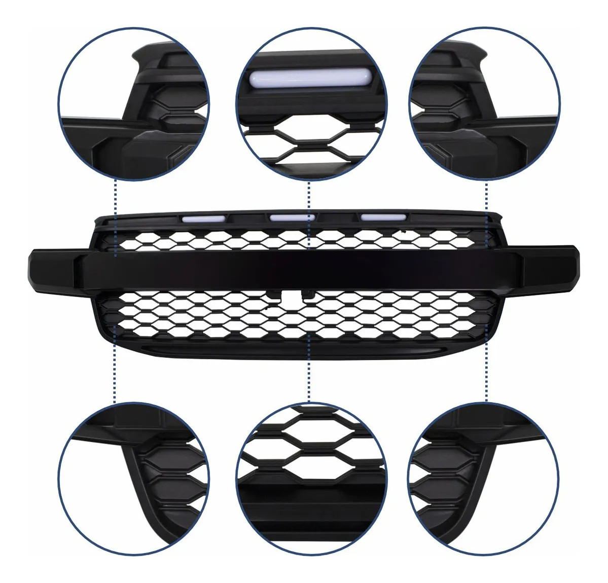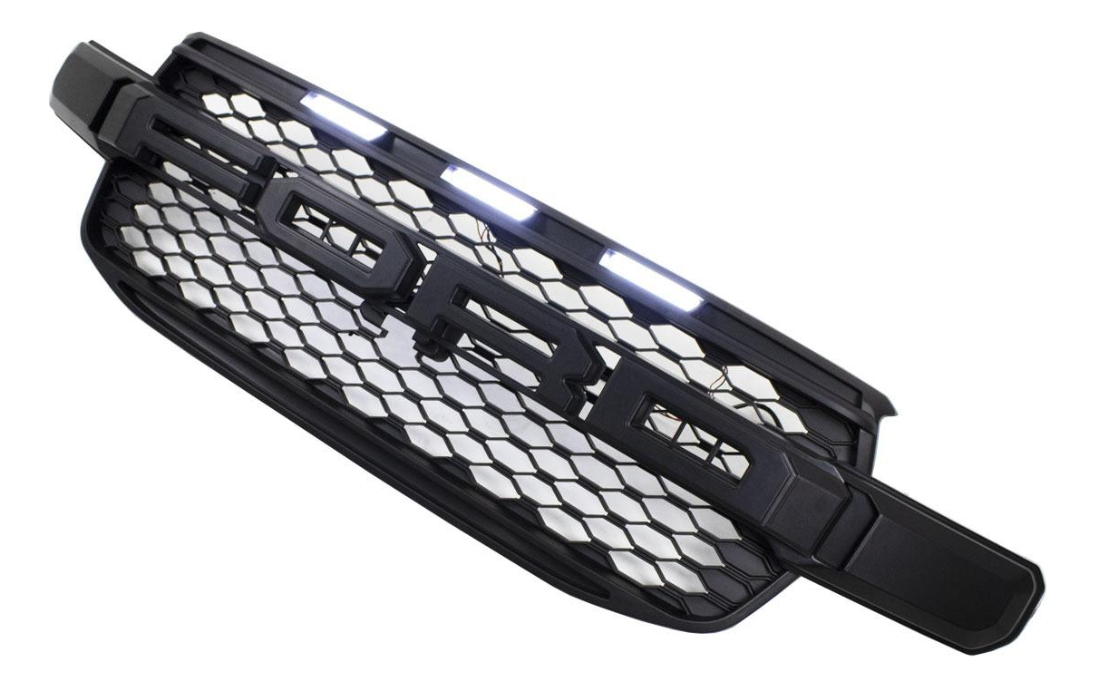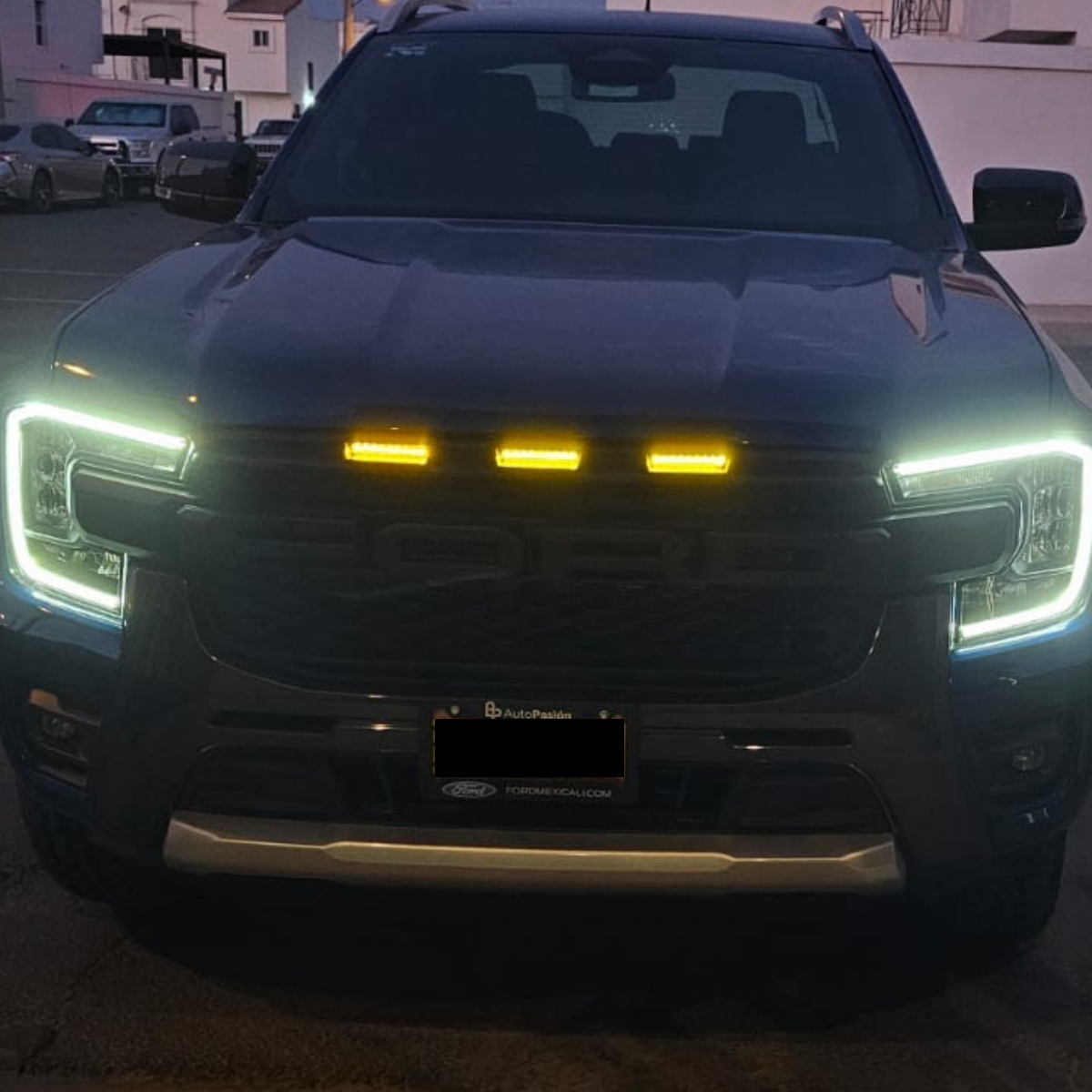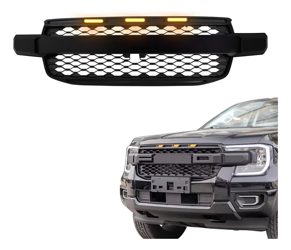 Transforma el frente de tu Ranger con esta parrilla estilo Raptor, equipada con luces LED ámbar que aportan un look agresivo y funcional. Compatible con todas las versiones, desde trabajo hasta off-road.
