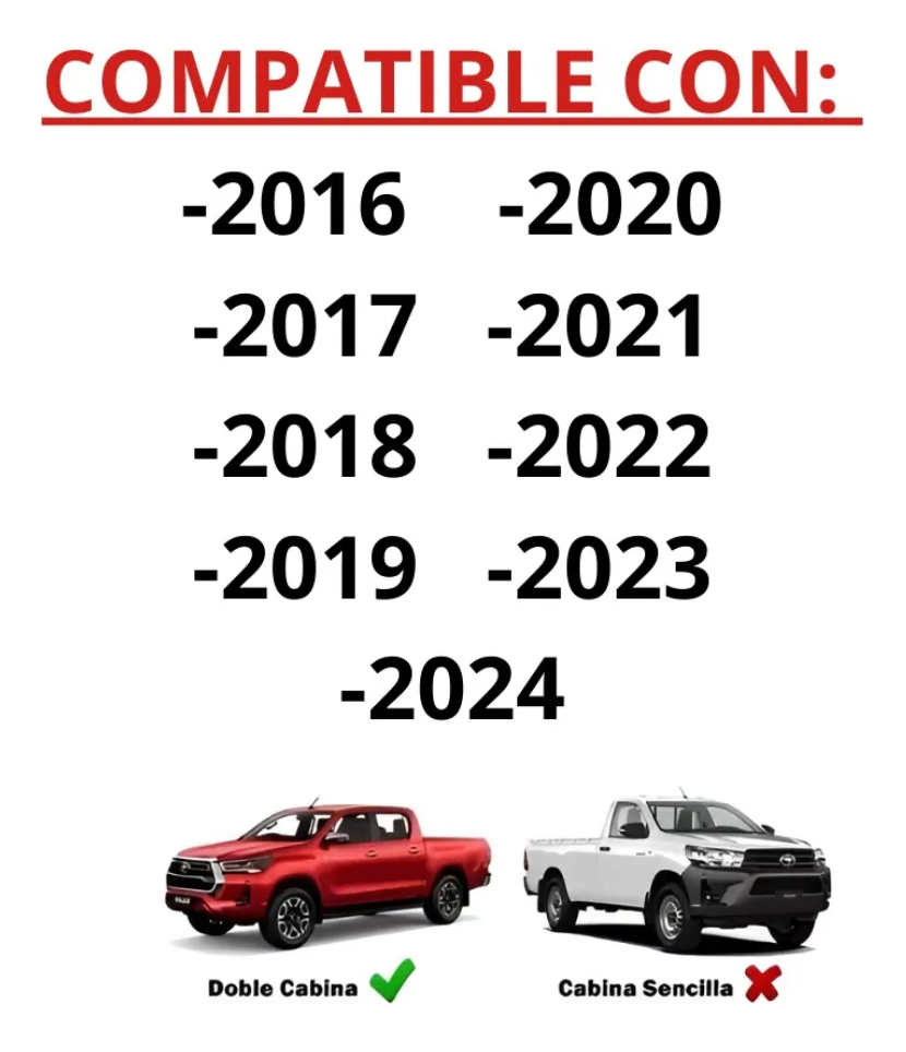 Compatibilidad: Especialmente diseñado para Toyota Hilux modelos 2024, 2025 y 2026.