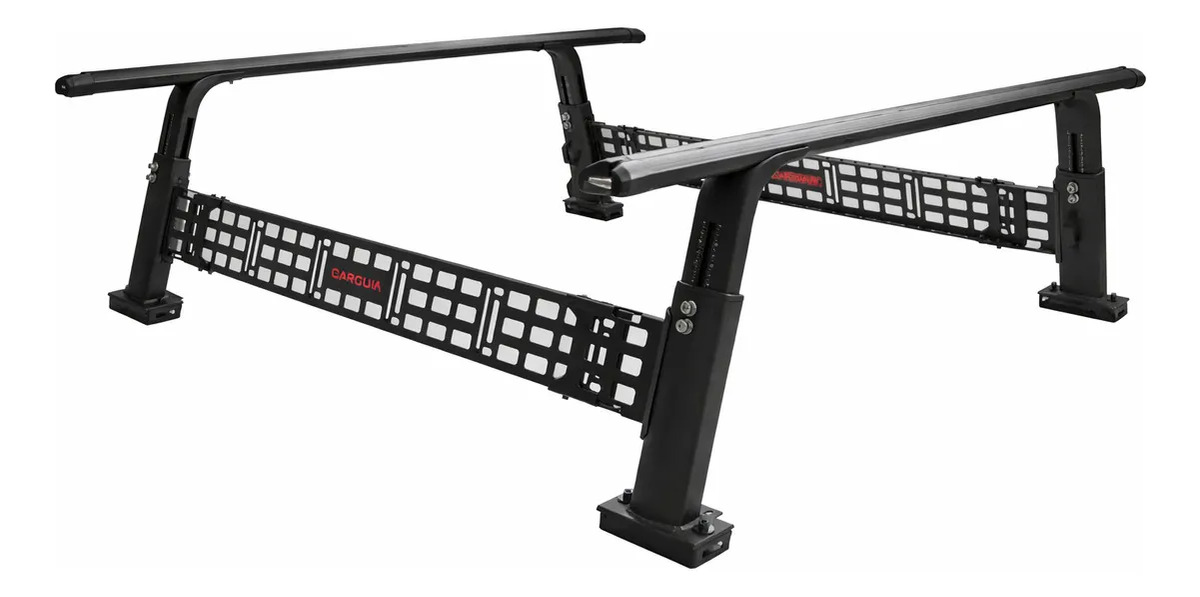 Su diseño lineal con barras superiores permite transportar de forma segura escaleras, tubería, madera, equipo de trabajo o accesorios overland. Los paneles laterales perforados facilitan múltiples puntos de amarre, brindando mayor control y estabilidad durante el traslado de la carga.