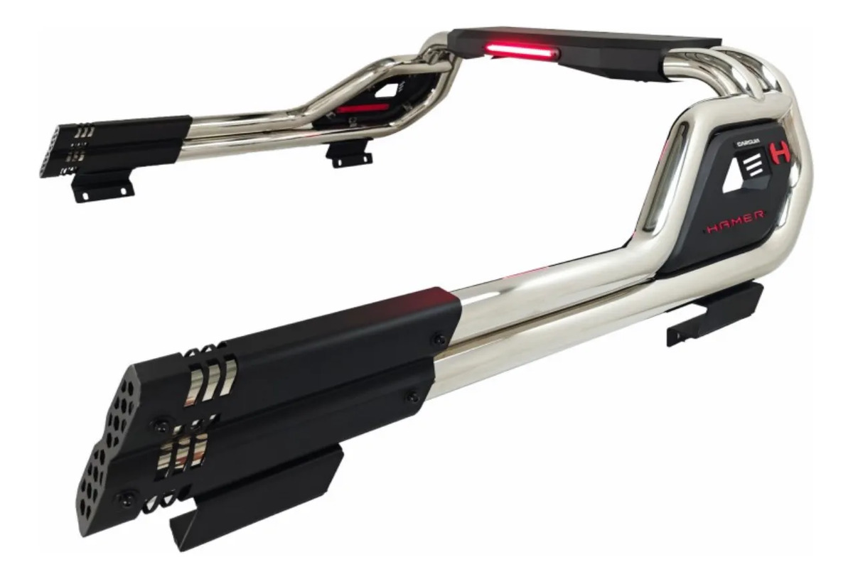 Fabricado en acero de alta resistencia con acabado cromado y protecciones en color negro, este roll bar ofrece gran durabilidad, resistencia a la corrosión y un ajuste firme sobre la batea de la camioneta.