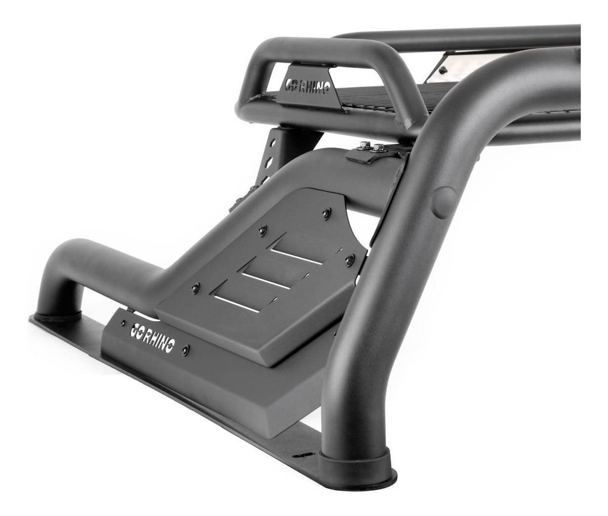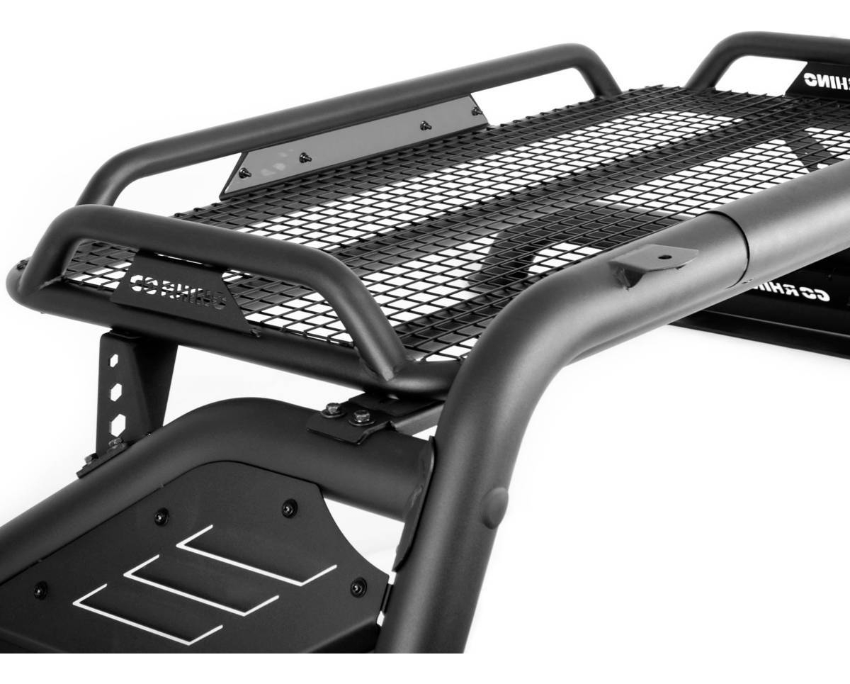 Roll bar Go Rhino con canastilla incluida, diseño robusto que combina la estética de un roll bar con la practicidad de contar con un espacio de carga adicional en la batea de la pick up.