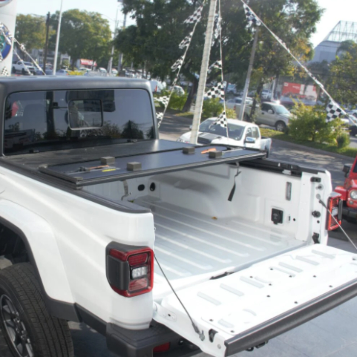 La tapa de batea rígida tipo trifold es la solución ideal para quienes buscan seguridad, practicidad y estilo en su pick up Jeep JT Mojave. Con su sistema de 3 pliegues, permite abrir parcial o totalmente la batea sin necesidad de desmontarla, brindando versatilidad en cada uso.