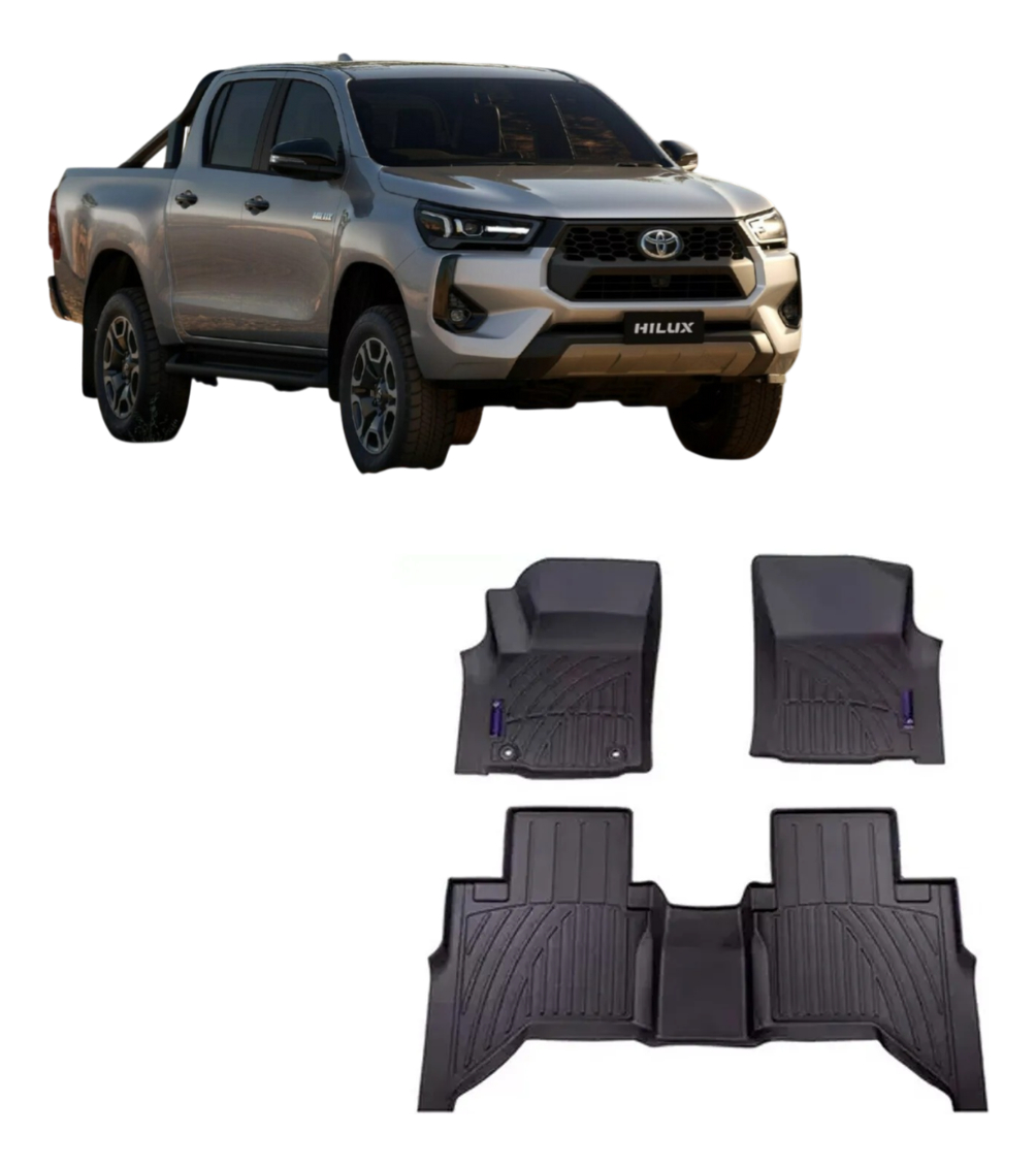Tapetes de uso rudo diseñados específicamente para Toyota Hilux Revo (Modelos 2016-2024). Fabricados con materiales duraderos y de alta calidad, estos tapetes ofrecen una excelente cobertura y protección para los pisos del vehículo, manteniendo su interior limpio y nuevo.